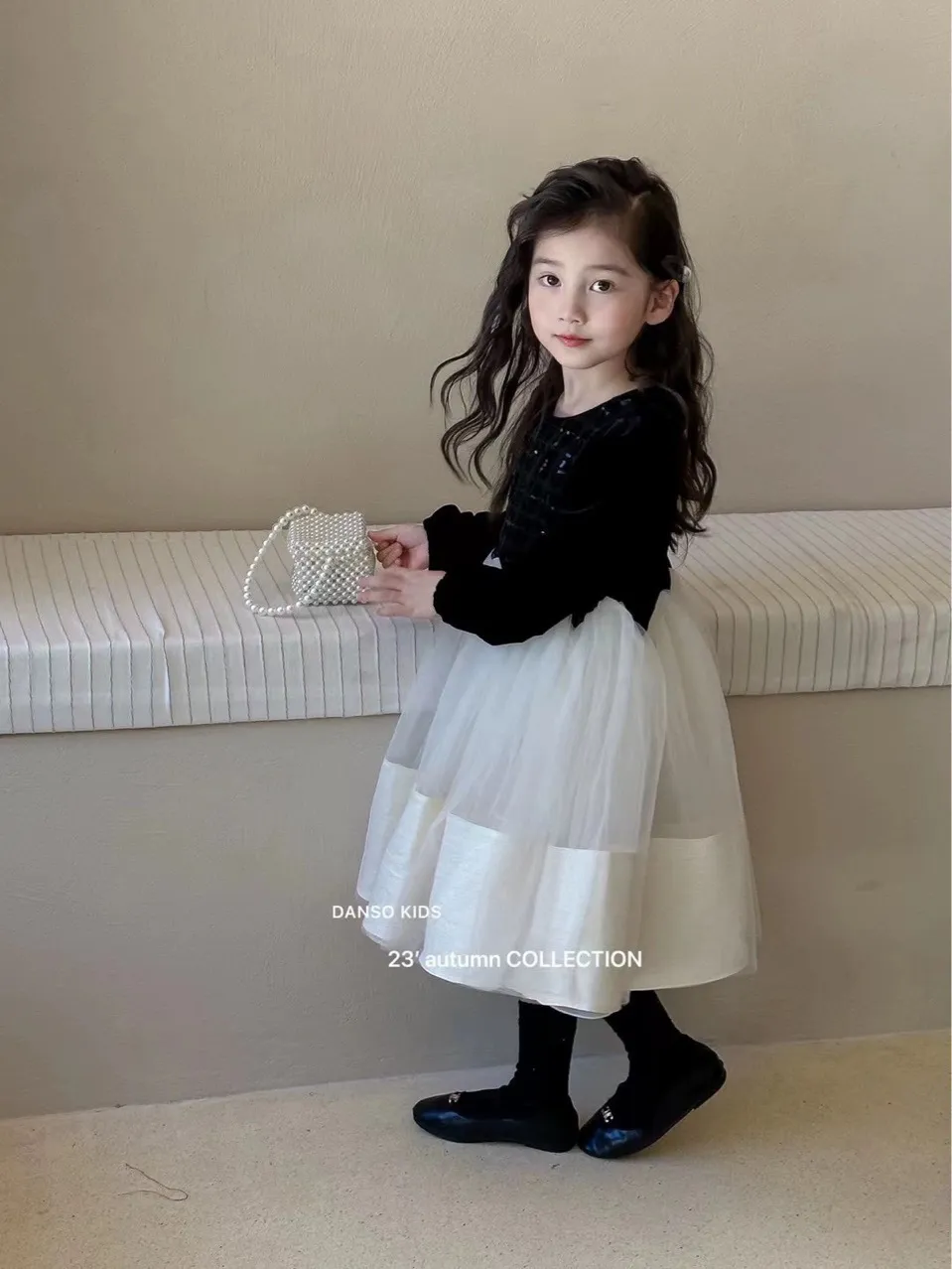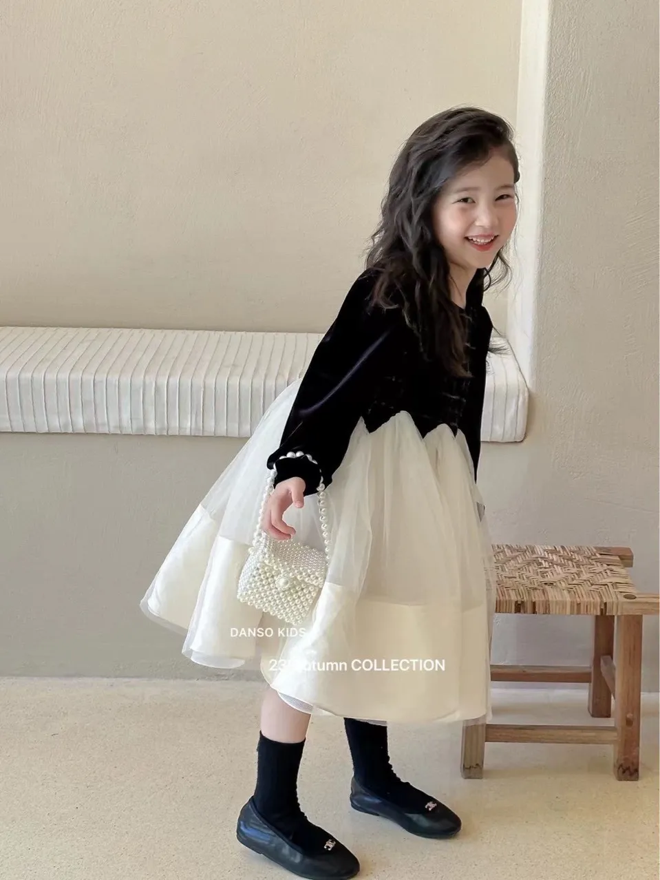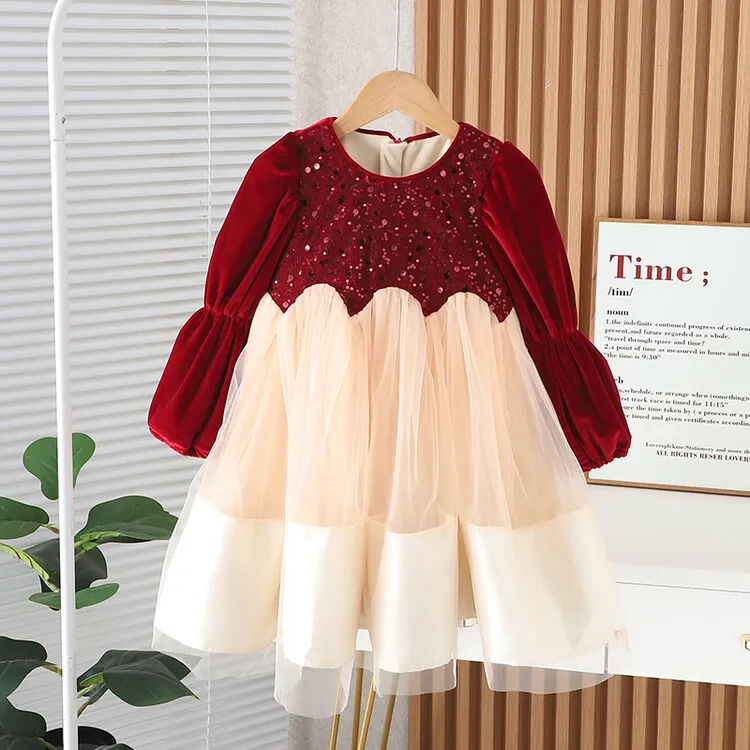 【90-150cm】毎日着たくなる プリンセス セレブリティ パーティー 切り替え 女の子 長袖 ワンピース