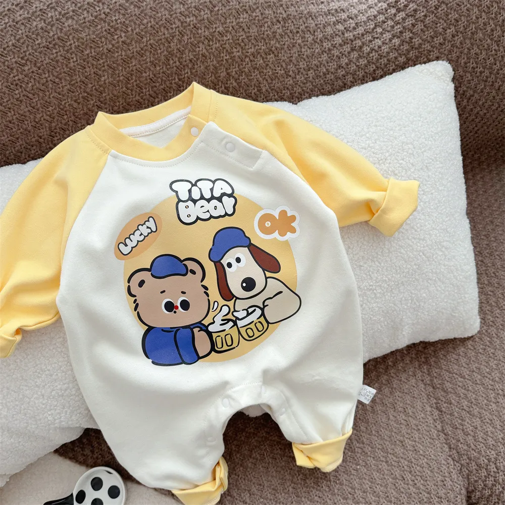 【59-90】春新作ミニマリズムバルーンプリントロンパース