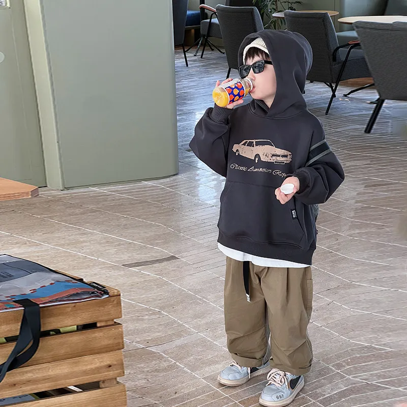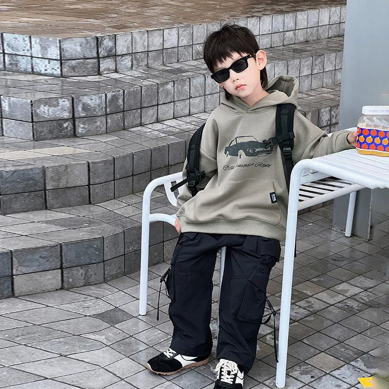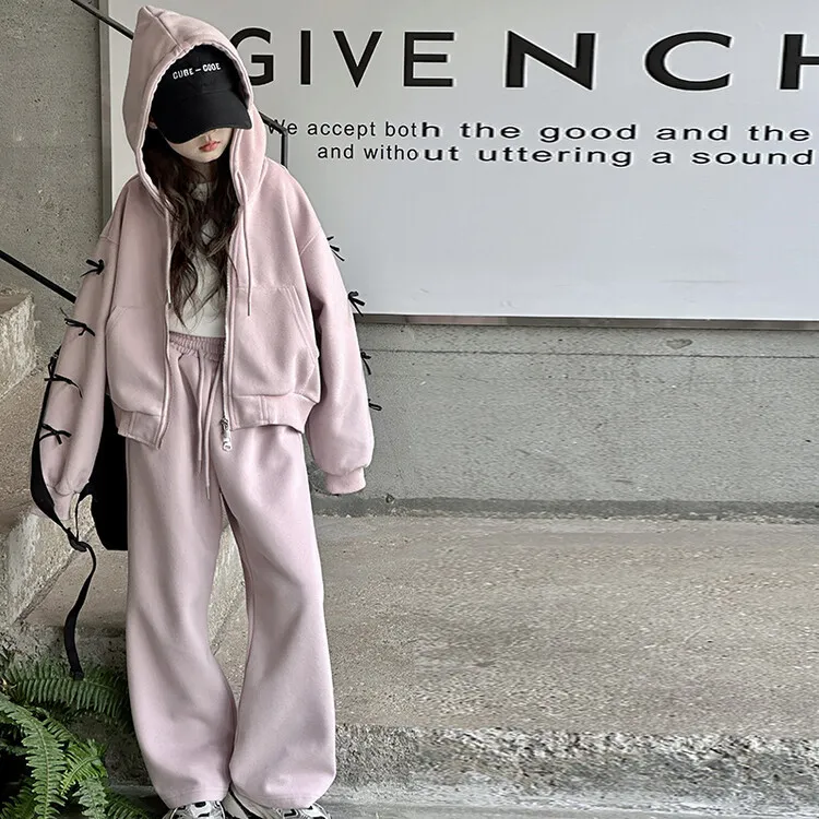 【130-160cm】二点セット シンプル ルーズ 着心地良い 定番 ジップパーカー+長ズボン セットアップ